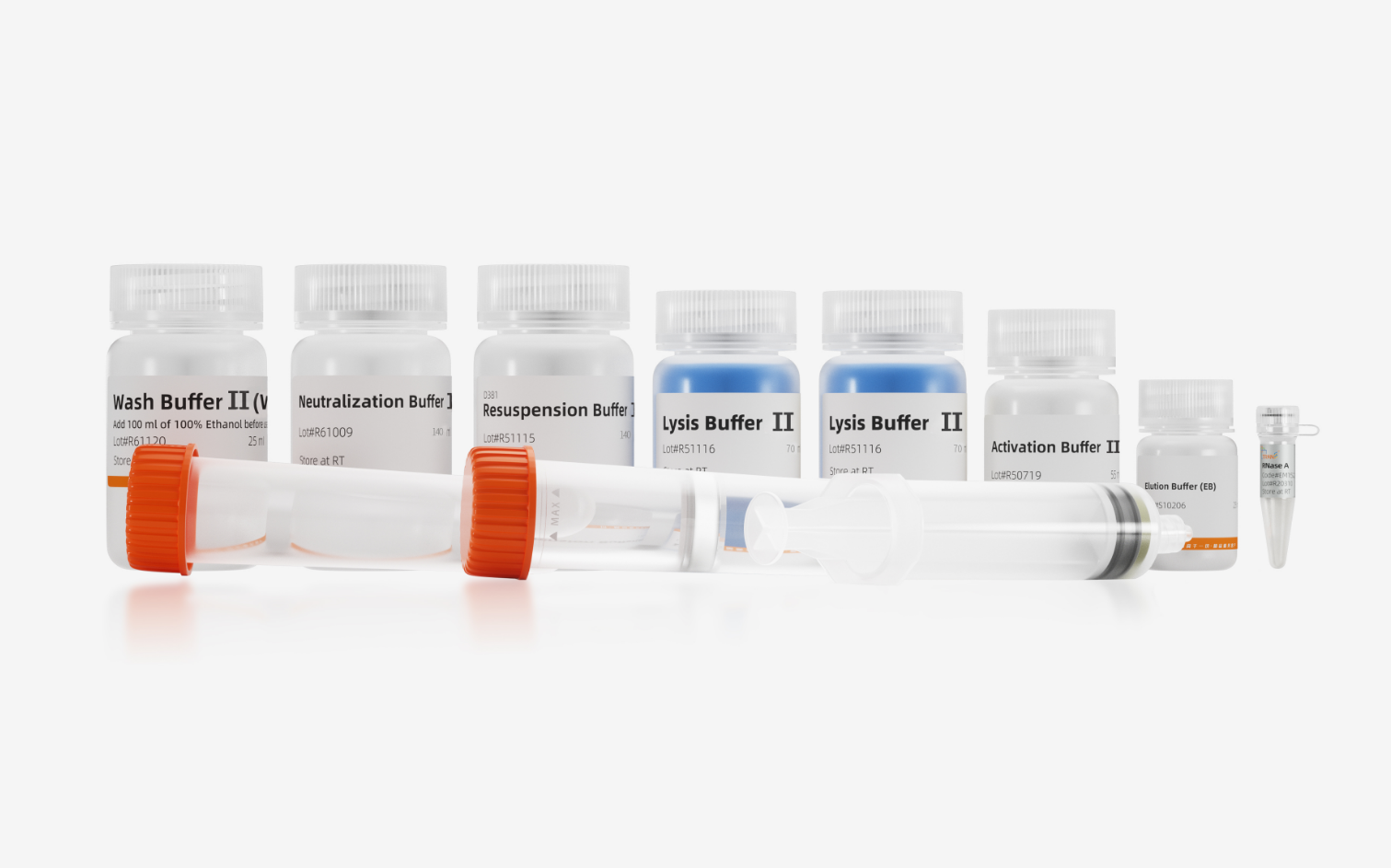 本產(chǎn)品為通用型柱法質(zhì)粒大提試劑盒。通過優(yōu)化的裂解體系對大腸桿菌細胞進行裂解使其高效釋放出質(zhì)粒DNA。經(jīng)硅膠膜離心柱特異地吸附DNA,可實現(xiàn)100-500ml LB培養(yǎng)基制備的大腸桿菌菌體的一管式裂解中和,上清液體積小于50 ml。溶液含指示劑,通過溶液顏色的變化,指示裂解、中和是否完全,實現(xiàn)操作的可視化。使用本試劑盒提取的質(zhì)粒DNA適用于酶切、連接、轉(zhuǎn)化、測序和轉(zhuǎn)染等實驗。